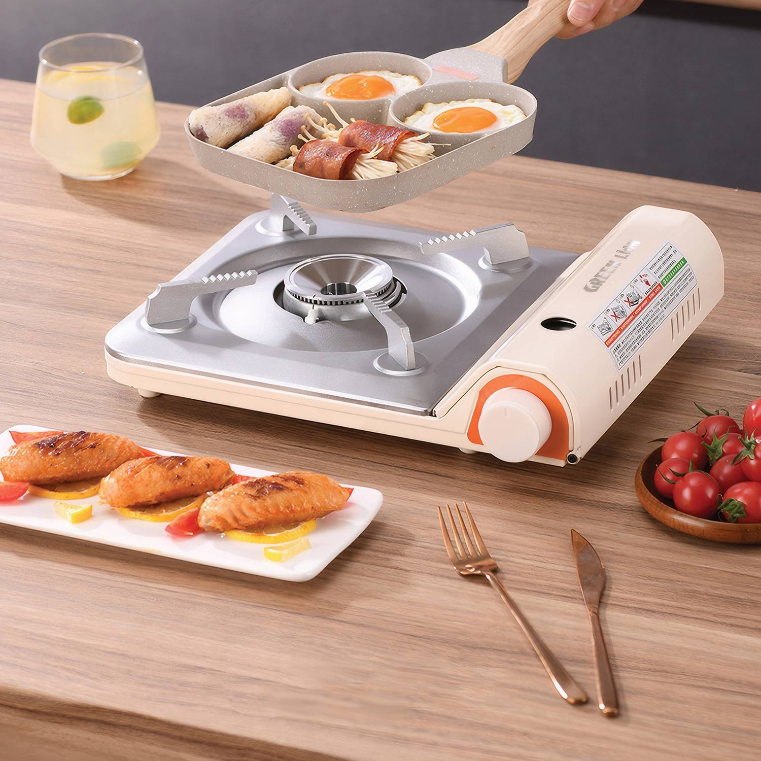 The Green Lion Portable Outdoor Stove 3.5KW in beige is great and efficient for cooking on all your outdoor adventures. This product is constructed from high-quality iron, aluminum, and PP materials; it boasts a powerful heating output of 3.5 kW and can handle weights of up to 15 kg. With 100 minutes of continuous burning time and 255 g/h butane gas consumption, this model will be appropriate for constant serving in cooking, camping, fishing, hiking, and picnics. Furthermore, it uses an ultra-thin stack design and electronic ignition to use and store conveniently. Compact, durable, perfect for on-the-go cooking.